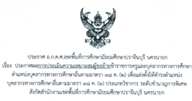 ประกาศ อ.ก.ค.ศ. เขตพื้นที่การศึกษามัธยมศึกษาปราจีนบุรี นครนายก เรื่อง ผลการพิจารณาย้ายข้าราชการครูและบุคลากรทางการศึกษา ตำแหน่งครู (ย้ายกรณีปกติ)