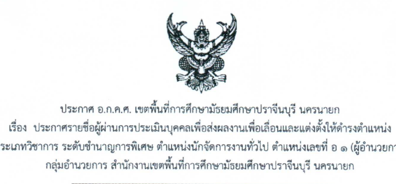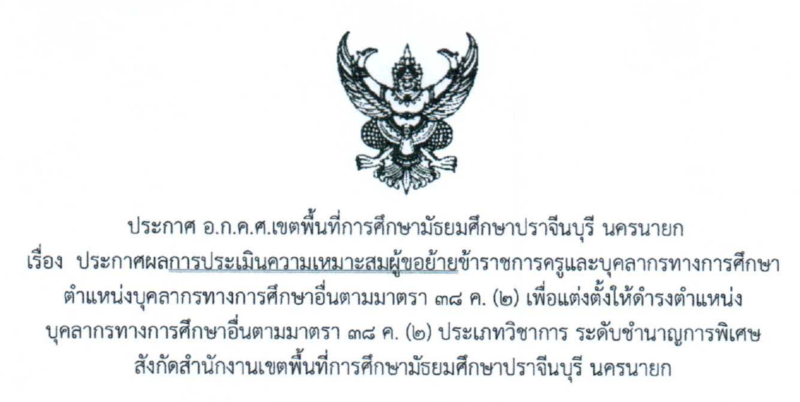 ประกาศ อ.ก.ค.ศ. เขตพื้นที่การศึกษามัธยมศึกษาปราจีนบุรี นครนายก เรื่อง ผลการพิจารณาย้ายข้าราชการครูและบุคลากรทางการศึกษา ผู้บริหารสถานศึกษา