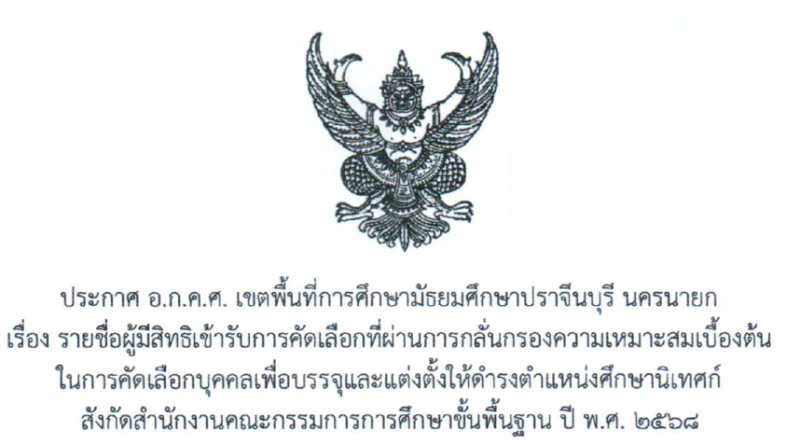 ประกาศสอบบรรจุ ย้ายและแต่งตั้งประชาสัมพันธ์ กลุ่ม/หน่วย/โรงเรียน admin 25 พฤศจิกายน 256826 พฤศจิกายน 2025 ประกาศ อ.ก.ค.ศ. เขตพื้นที่การศึกษามัธยมศึกษาปราจีนบุรี นครนายก เรื่อง รายชื่อผู้มีสิทธิเข้ารับการคัดเลือกที่ผ่านการกลั่นกรองความเหมาะสมเบื้องต้น ในการคัดเลือกบุคคลเพื่อบรรจุและแต่งตั้งให้ดำรงตำแหน่งศึกษานิเทศก์ สังกัดสำนักงานคณะกรรมการการศึกษาขั้นพื้นฐาน ปี พ.ศ.2568 Read More